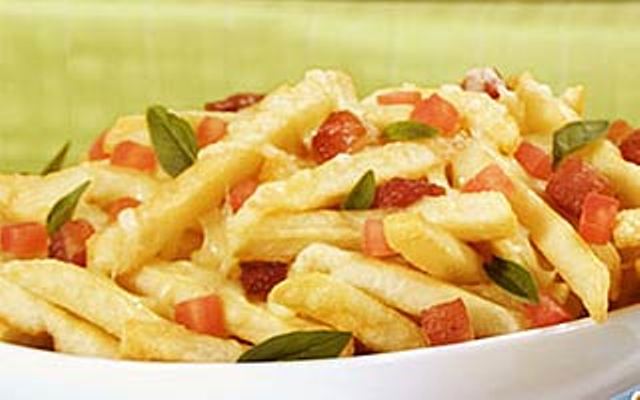Coloque delicadamente metade da embalagem das batatas, ainda congeladas, e frite por 8 a 10 minutos ou até ficarem douradas.
