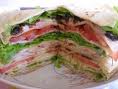 - Sobre um prato ponha um disco de panqueca, espalhe um pouco de requeijão e distribua rodelas de tomate, de pepino, uma porção de cenoura e uma camada de presunto e queijo.