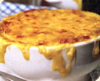 - Caso não queira preparar a sopa em porções individuais, monte o pão gratinado em um refratário fundo ou em uma panela de barro que possa ir ao forno.