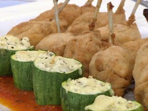 - Faça um recheio de cebolas cozidas, polpa de abobrinha e ricota, misture, tempere e recheie;