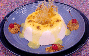 - Misture a gelatina dissolvida em 1/3 de xícara (chá) de água, com o creme reservado e coloque num refratário para pudim (8 cm x 3,5 cm).
