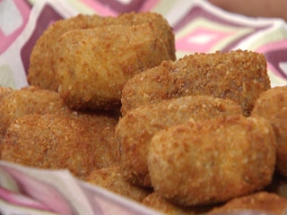 - Espalhe em um prato, deixe esfriar, enrole os croquetes, empane no ovo e na farinha de rosca.
