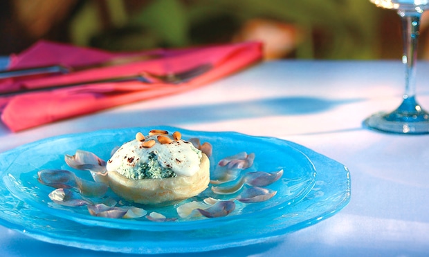- Despeje sobre os fundos de alcachofra o espinafre e polvilhe cada um deles com uma colher (chá) de queijo e o pinoli.