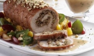 - Espalhe o recheio sobre o lombo e enrole como um rocambole.