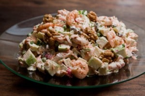 Salada de Camarão e Kani com Maçã, Cenoura, Ervilha e Nozes