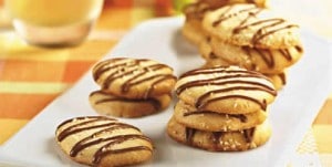 - Coloque o chocolate em um saco de confeitar e decore os biscoitos.