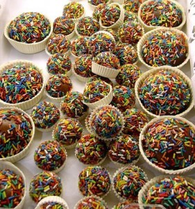 • Leve à geladeira para esfriar, depois enrole os docinhos, passe no granulado e coloque nas forminhas.