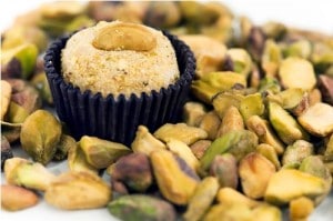 - Depois de triturado passe a bolinha nele e finalize com meio pistache inteiro.