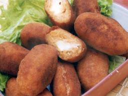 - Deixe esfriar, faça os croquetes recheando com um pedaço de requeijão culinário.