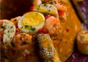 • Retire o cuscuz do fogo, aguarde 5 minutos, desenforme sobre um prato grande e sirva com o molho.