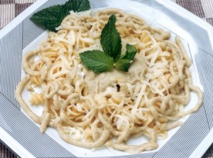 - Volte para a panela e acrescente o creme de leite, o restante da hortelã, sal e pimenta do reino.