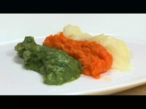 • Tempere os três tipos de purê com sal e azeite e sirva.