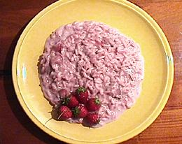 • Assim que for absorvido, junte os morangos picados, o caldo restante e continue mexendo.