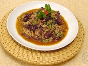 - Rabo cozido e desfiado