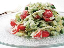- Numa tigela, coloque todos os ingredientes, regue com o molho e misture delicadamente.