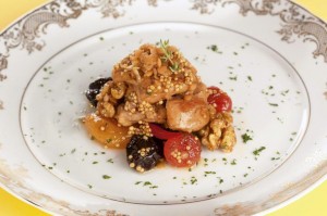• Misturar numa panela frutas secas, dedo de moça, açúcar, mel, sementes de cardamomo e de mostarda e suco de laranja.