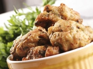 - Quando os bolinhos estiverem dourados, retire com uma escumadeira e coloque para escorrer sobre papel toalha.