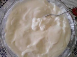 • Coloque o leite e o dente de alho descascado no liquidificar, ligue-o na velocidade máxima e vá adicionando óleo até dar liga.
