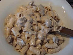 - 300 g de rigatone cozido em água, sal e um fio de azeite,