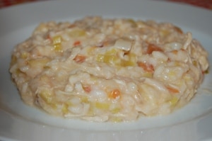 - Em outra panela, refogue o frango e adicione ao risoto.