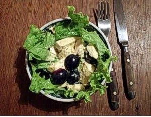 - Em uma tigela misture o frango, as uvas (tire as sementes) e a cebolinha junto com o molho.
