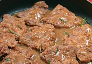 • Em uma tigela, tempere os bifes com o alho, sal e pimenta e passe-os na farinha de trigo.