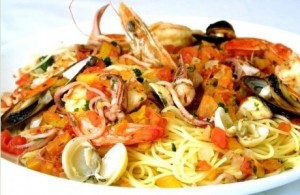 • Acrescentar o alho picado, refogar e colocar as lulas, os mariscos e os vôngoles, refogar por cerca de 3 minutos.
