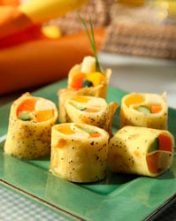- Distribua as tiras de legumes em um único sentido sobre a massa e enrole-as bem apertado.