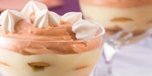 - Em um refratário alterne camadas do biscoito umedecido e camadas do creme, finalizando com os biscoitos.
