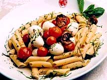 - Numa travessa colocar a massa já cozida, o molho e por cima a mussarela de búfala e finalmente polvilhar com o restante da hortelã.