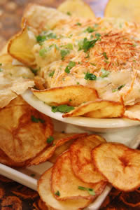 • Descasque as batatas, corte-as em rodelas e cozinhe em água e sal até que fiquem macias, porém firmes.