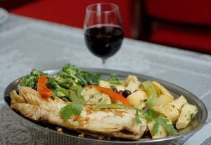- Sirva o peixe quente sem a pele, salpicado com sal e pimenta e borrifado com azeite.