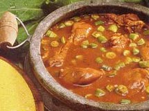 • Junte o frango, deixe fritar levemente, escorra o excesso de gordura, acrescente o urucum, misture bem.