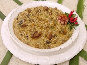 - Transfira todos os ingredientes para outra panela (sem pressão), junte 2 xícaras (chá) de arroz arbóreo e cozinhe, mexendo de vez em quando, até o arroz ficar macio e al dente (mais ou menos 20 minutos).