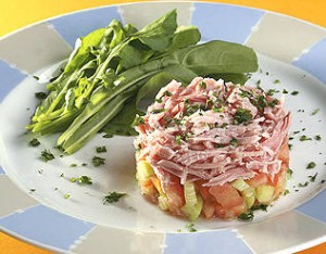 - Sirva o lombo com salada de rúcula e o vinagrete de maxixe.