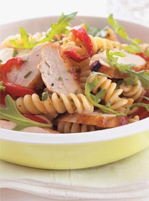 - Corte-o em tirinhas e junte o macarrão, a rúcula e o alecrim.