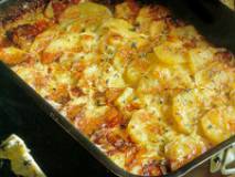 • Unte um refratário com 1 colher (sopa) de manteiga e disponha as fatias de batata em camadas, distribuindo sobre cada camada um pouco da mistura preparada.