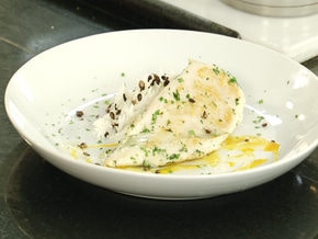 • Temperar o peito de frango com as ervas picadas, sal e pimenta. Reservar.