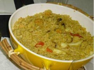 • Dourar os ingredientes, acrescentar aos poucos, um a um, depois o caldo fervendo e tampar.