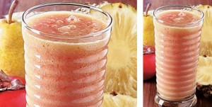 • Bata as frutas com a água e os cubos de gelo no liquidificador.