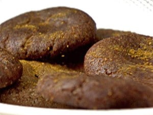 - Em uma tigela, coloque 300 g de farinha de trigo, 50 g de chocolate em pó, 200 g de açúcar cristal fino, 1 pitada de sal, 1 colher (chá) de bicarbonato de sódio e 1 colher (sopa) de curry, 125 g de margarina derretida com 75 g de melaço, 1 ovo batido e 1 colher (chá) de casca de laranja ralada e misture até formar uma massa de chocolate homogênea. Reserve.