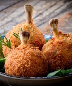 - Empane as coxinhas na farinha de mandioca torrada e coloque na geladeira para resfriar por uns 30 minutos ou até que a coxinha fique firme.
