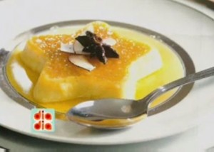 - Desenforme o pudim, regue com a calda e decore com os chips de coco.