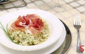 - Ajuste o sal e sirva em seguida com 5 fatias de Parma sobre cada prato de risoto.