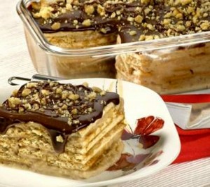 • Monte o pavê de castanha-de-caju com chocolate num refratário médio da seguinte forma: biscoito maizena umedecidos no licor de chocolate, creme inglês com castanha-de-caju, calda caramelada, biscoitos maizena umedecidos no licor de chocolate, creme inglês com castanha-de-caju, calda caramelada, biscoitos maizena umedecidos no licor de chocolate, creme inglês com castanha-de-caju, calda caramelada, biscoito maizena, cobertura de chocolate e castanhas-de-caju picadas.