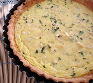 - Recheie a massa da quiche com esta mistura e leve ao forno (200ºC) até firmar (10 minutos, aproximadamente).
