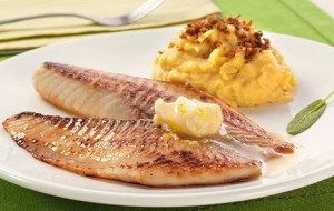 - Sobre o peixe ainda quente, coloque 1 colher (chá) de Qualy composta e sirva acompanhado do purê polvilhado com a farofa de bacon e sálvia.