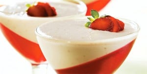 - Complete com o creme as taças com a gelatina e volte à geladeira até firmar. Decore com morangos picados.