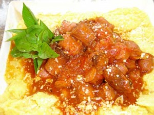 - À parte lave as linguiças, tire a película que envolve ela, corte em rodelas e frite para dourá-las dos dois lados (frite em uma frigideira sem óleo porque a linguiça já tem gordura),