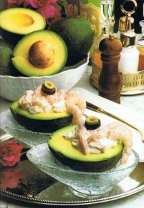 • Recheie os abacates com o creme de camarão e enfeite a gosto com as azeitonas descaroçadas.